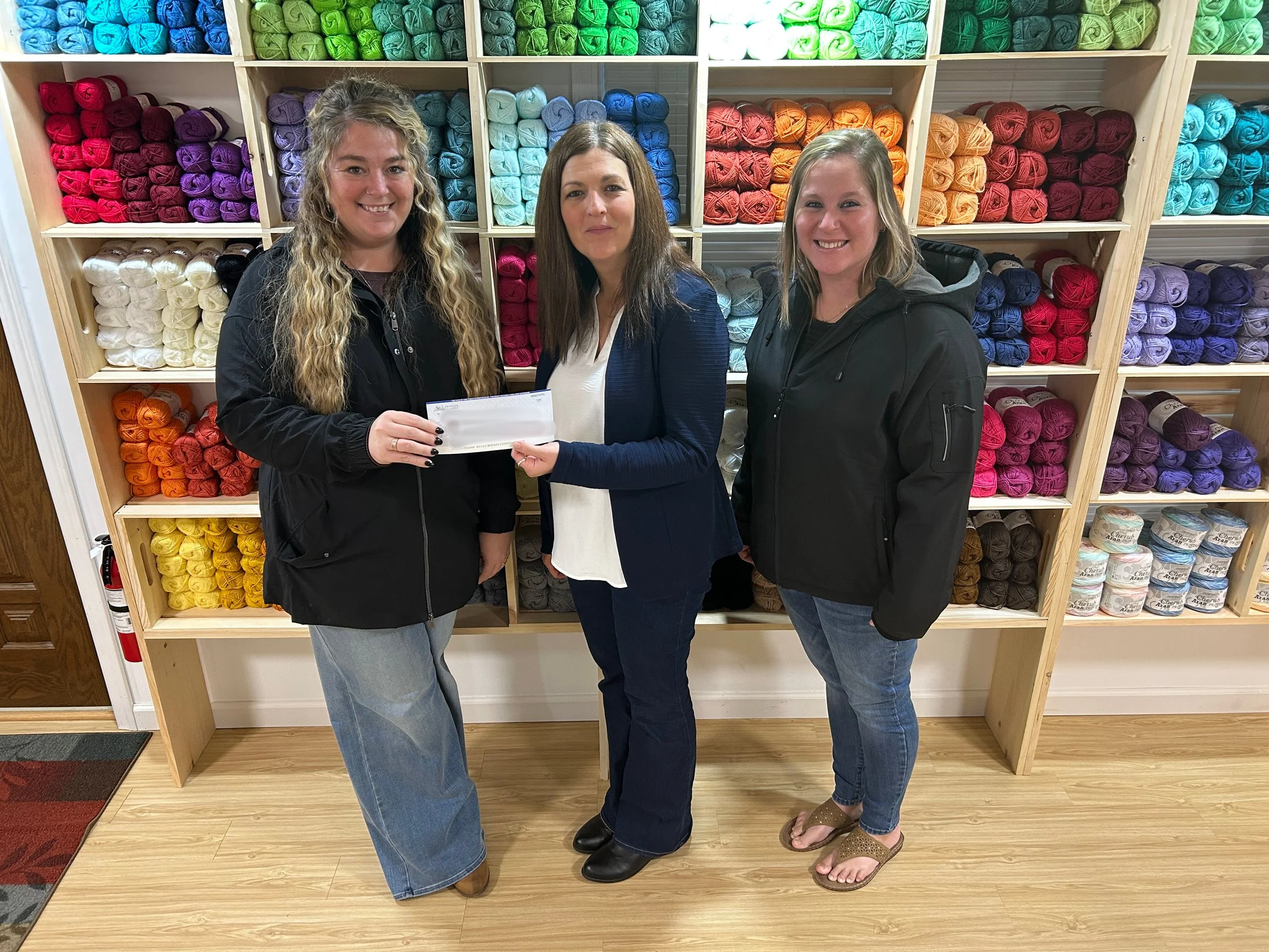 Pictured from SLFCU is Brandi Stark, Operations Lead, and Erica Sloan, Marketing Officer. Accepting the donation is Kristin Proven, Development Director.